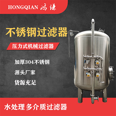 多介质过滤器是利用一种或几种过滤介质,在既定的压力下把浊度较高的水通过适当厚度的粒状或非粒材料,从而可以的除去悬浮杂质使水澄清的过程,常用的滤料有石英砂,锰砂等,主要用于水处理除浊,软化水,纯水的前级预处理等,出水浊度可达3度以下。