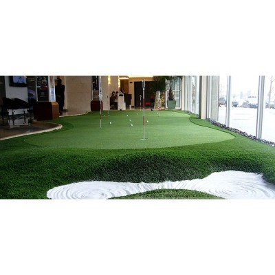 高尔夫人工果岭专用人造草坪其草纤维不含任何有害物质,可以常年保持绿色,抗老化性能优异,推荐使用17mm,密度65000簇的纯曲丝人造草坪,色牢度高,耐踩踏,耐磨损,透水性好,如果场地面积允许、可以搭配30mm到40mm的休闲人造草坪,让果岭场地的美观度进一步提升。阳台景观高尔夫果岭(人工果岭)的相关介绍、您都了解了吗可以联系:成都天一佳