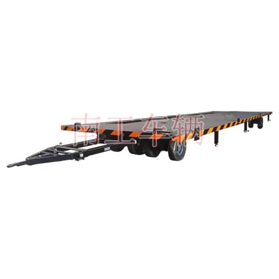 20吨预制舱重型牵引平板拖车南工车辆长期非标订制,拖车用于工业、仓库、物流中心、码头等场区内货物短途运输,也可配置方舱,房车,移动商店等房屋机构牵引移动。