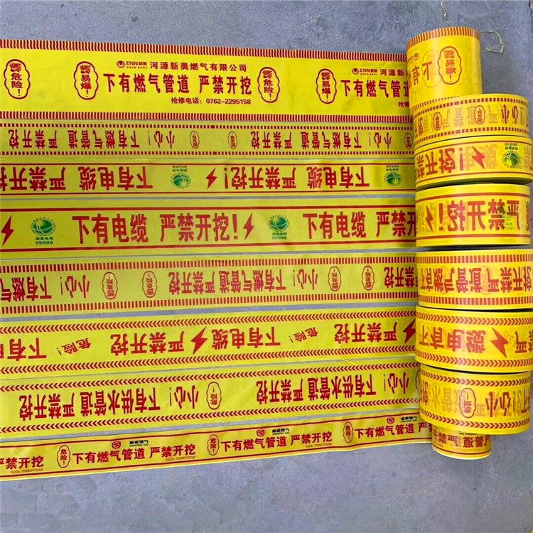 我公司专业生产各用户所需的多种规格电力地埋式警示带、燃气管道地埋式警示带、编织布地埋警示带,并具有使用方便、粘性强、耐候性好,等特点,深受广大用户欢迎,各项性能指标均达到或超过产品行业标准。