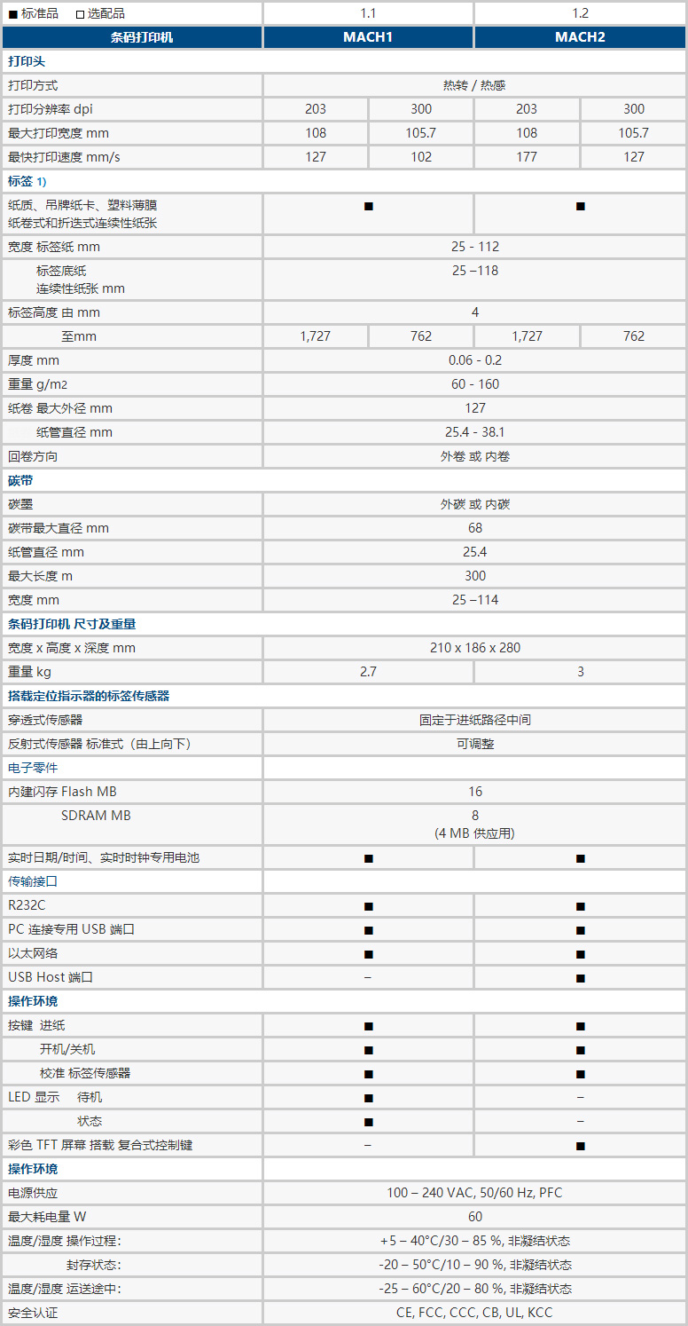 MACH1/2 采用 1 至 300 m 长的标准碳带。置中安装的最大标签纸卷直径为 127 mm。 诸如裁刀、剥离装置及外挂送纸器等等外围配件建构出此部易于保养且支持完整的泛用型条码打印机。