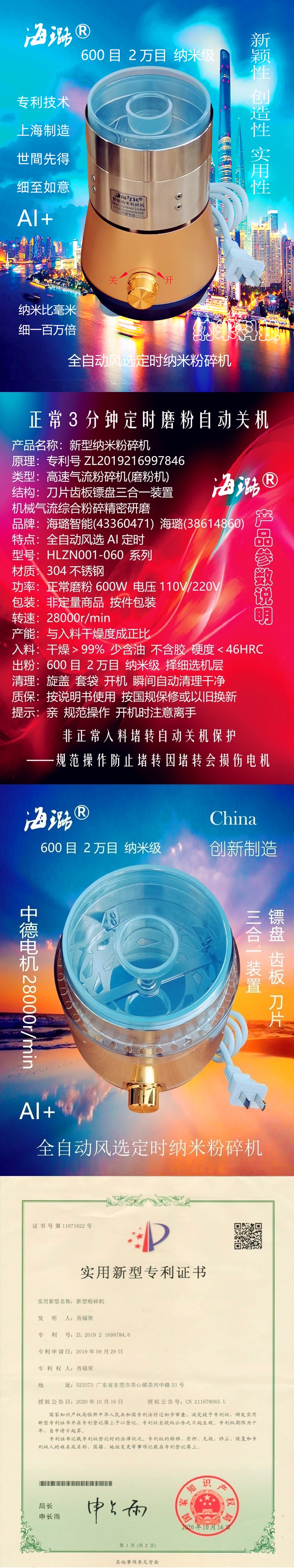 高校科技创新高质量磨粉机超精密全自动风选AI定时海璐纳米粉碎机