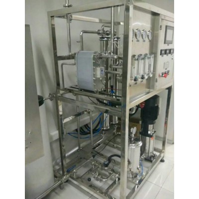 当进水中的Na+及CI-等杂质离子吸咐到相应的离子交换树脂上时,这些杂质离子就会发生象普通混床内一样的离子交换反应,并相应地置换出H+及OH-。一旦在离子交换树脂内的杂质离子也加入到H+及OH-向交换膜方向的迁移,这些离子将连续地穿过树脂直至透过交换膜而进入浓水室。这些杂质离子由于相邻隔室交换膜的阻挡作用而不能向对应电极的方向进一步地迁移,因此杂质离子得以集中到浓水室中,然后可将这种含有杂质离子的浓水排出膜堆。
