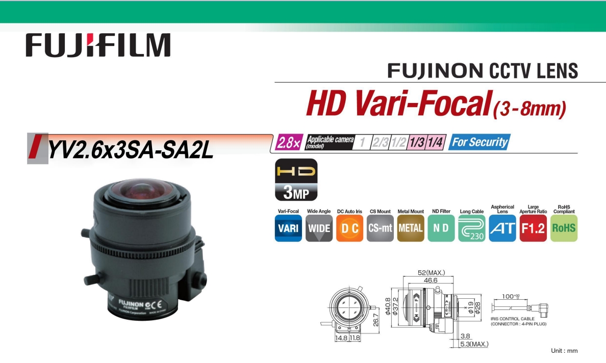 YV2.6x3SA-SA2L富士能3-8mm高清手动变焦镜头