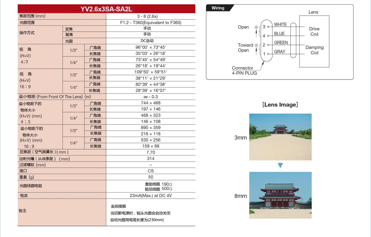 更新信息 快采购网供应商深圳森木光学科技有限公司供应供应YV2.6x3SA-SA2L富士能3-8mm高清手动变焦镜头,为您提供详细的产品报价、参数、图片等商品信息,本产品于2025-09-26 15:57更新,主要更新内容为:产品类别、产品参数、产品价格、产品图片等信息。如需进一步了解供应YV2.6x3SA-SA2L富士能3-8mm高清手动变焦镜头详细信息,请与厂家直接联系,并说明是在快采购网看到这条商机的。