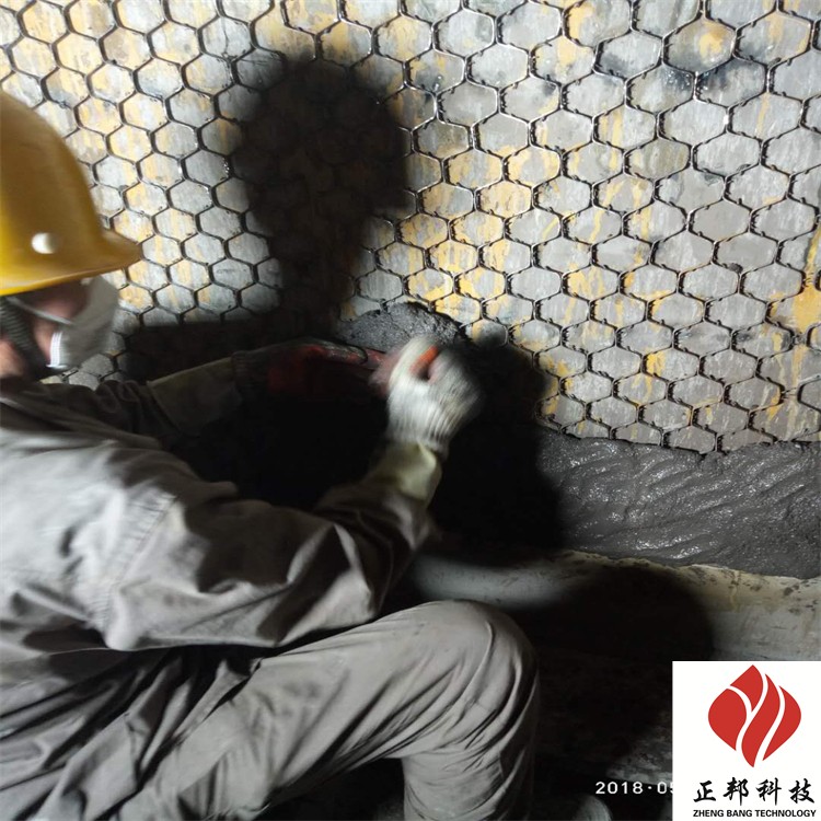 4、施工:将施工部位清理干净,内壁不得粘有杂物浮尘。 清理龟甲网或扒钉上面浮着物,清干净施工工作面浮尘、杂物、然后用手工涂抹耐磨陶瓷涂料,施工部位可用铁板等工具弄平整、光滑、接口要紧密。对于施工面积较大或厚度大于50mm以上部位要加焊锚固件,且间距不大于50mm。