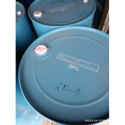 二丙二醇(英文名称Dipropylene glycol)又名双丙甘醇,一缩二丙二醇,缩水二丙二醇,4氧-2,6-己二醇(4-Oxaheptane-2,6-diol),1,1,-氧-二-2-丙醇(1,1'-Oxydi-2-propanol),2-羟丙基醚(2-Hydroxypropyl ether),2,2,-二羟基二丙醚(2,2'-Dihydroxydipropyl ethe),简称DPG。二丙二醇常温下是一种无嗅、无色、有甜味、水溶性和吸湿性液体。溶于水和甲苯,可混溶于甲醇、乙醚,有着辛辣的甜味,无腐蚀性。对皮肤刺激性很小,毒性很低。遇明火、高热可燃。与空气可形成爆炸混合物。适用于香精香料和化妆品等对气味比较敏感的用途。分子式为C6H14O3。 [1]