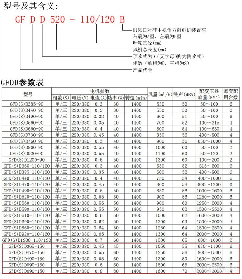 4、 风机长期置放重新使用时,应对风机进行检查试运行若无异常现象,方可联机使用。