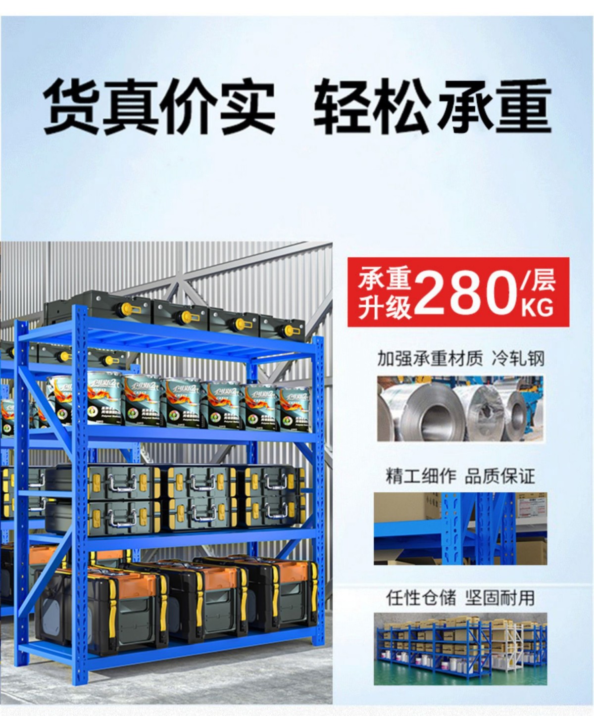 4 仓储货架主要是区别于超市货架,超市货架除具有存储功能外,另一重要的功能即是展示作用。相对于超市货架,仓储货架普遍应用于工业仓库,更着重于向上发展,充分利用存储空间,高度可达到40米以上,大型物流中心的设计可以是库架一体式结构,即先建造货架部分,以货架为建筑物的支撑结构,后建建筑结构,如围墙,屋顶等。重点在于存储、充分利用空间和另一重要功能——快速处理货物流通的存储货架形式。两种货架的功能各异,结构也相去甚远。其中江苏南京货架生产厂家、苏州常熟货架厂家较为密集。