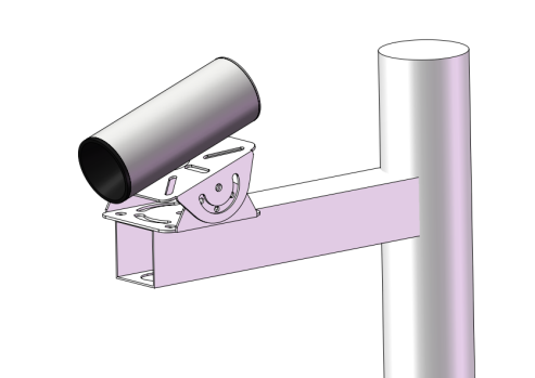 安装本产品时,应保证设备距离地面的照射距离3-10m,照射角度30°- 90°,且照射路径无任何遮挡。(建议安装高度3m,照射距离6m,照射角度30°) 在保证上述条件的情况下,将本产品通过万向节固定在立杆上,镜头朝向所测路面。