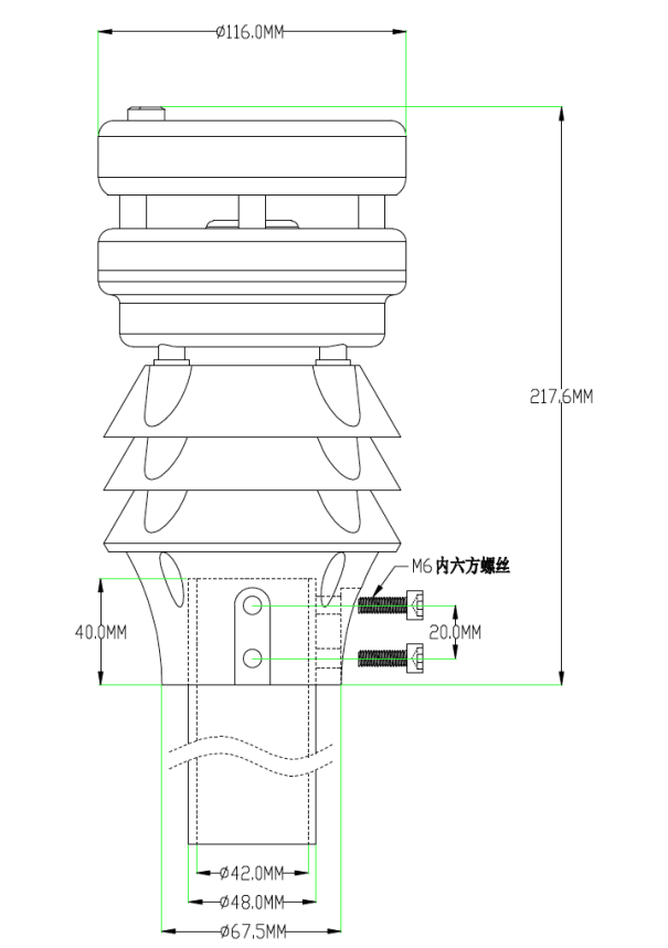 2、风速、风向两个参数:通过超声波原理测量风速和风向,还可以输出瞬时风速、瞬时风向、 平均风速、平均风向等数据。