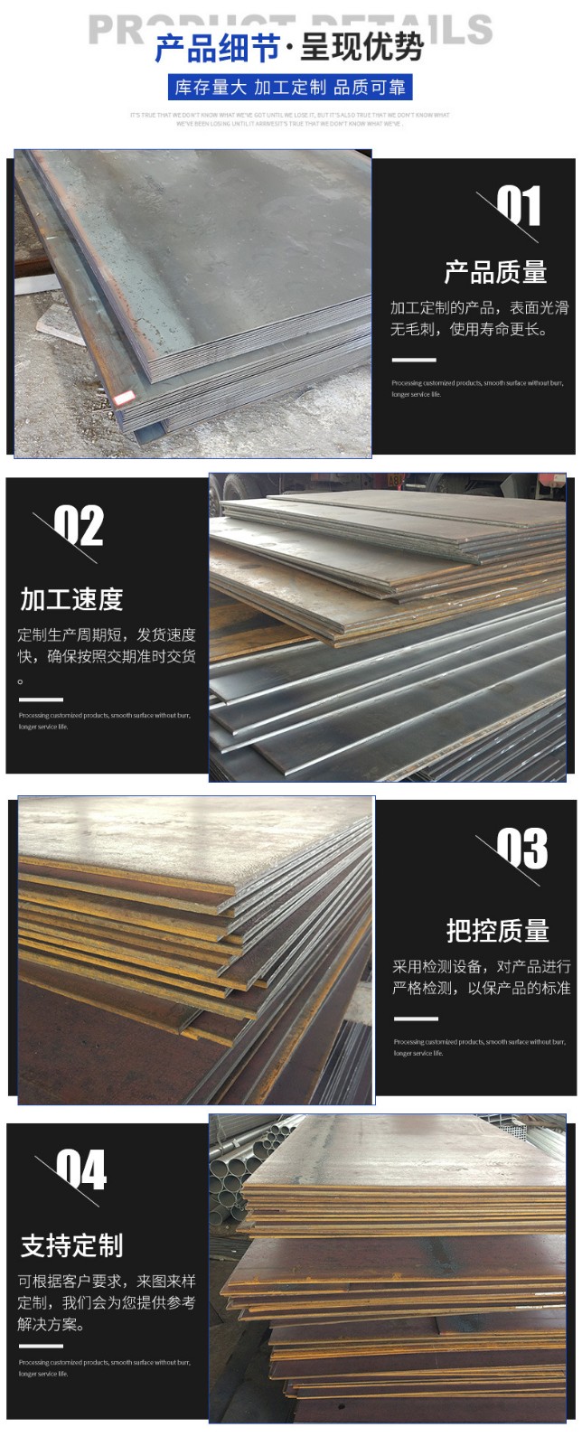矿山与建筑机械:ND钢板在矿山设备和矿石破碎设备的制造中占据重要地位,其高耐磨性能能够延长设备的使用寿命。在建筑机械领域,ND钢板被广泛应用于混凝土搅拌车的搅拌罐、搅拌叶片和卸料斗等部件锅炉和烟囱:ND钢板也用于制造锅炉烟筒钢板和预热器等设备,具有耐硫酸露点腐蚀的能力