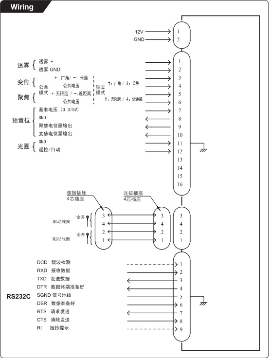 5.对应多种系统的接口,镜头可以由串行数字RS232和模拟两种方式控制,可选择适合系统的控制接口。串行通信可兼容主流的PELCO-D协议Fujifilm专用C10。