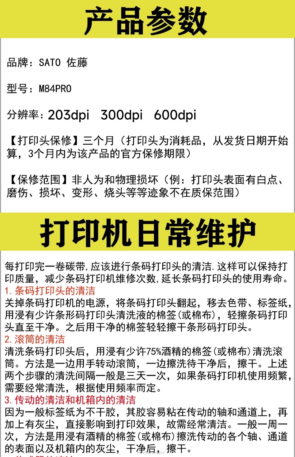 • M84pro打印头203dpi全新原装日本SATO佐藤M84打印机专