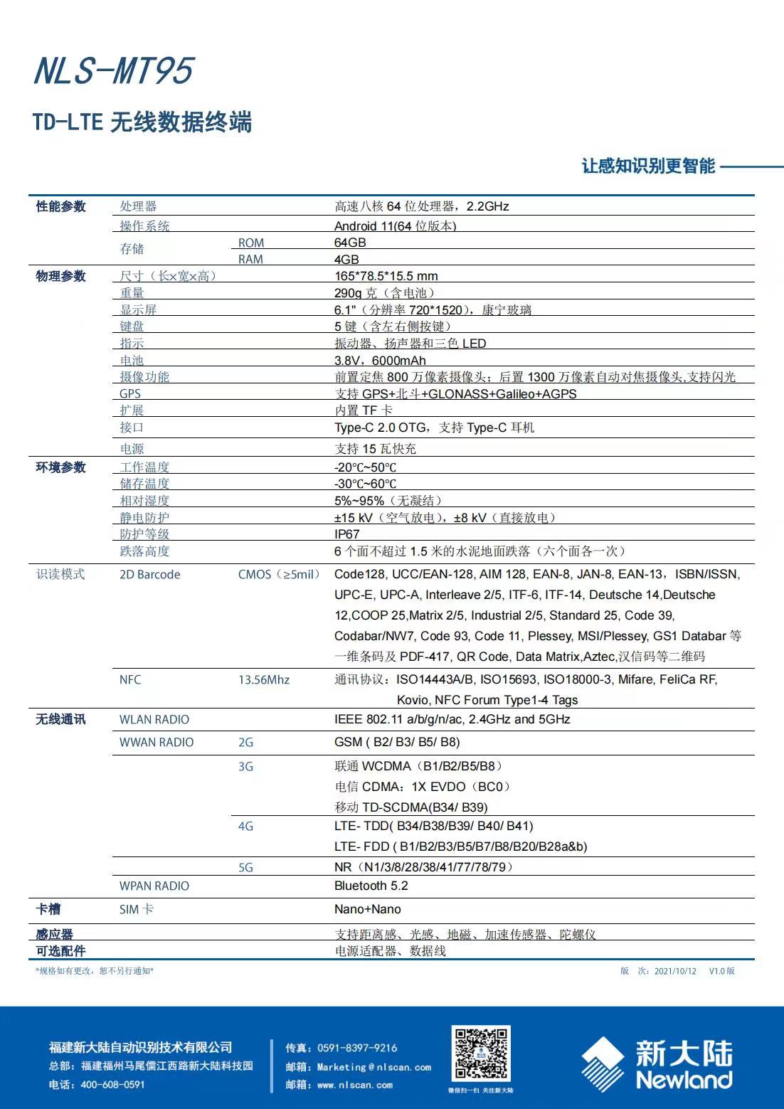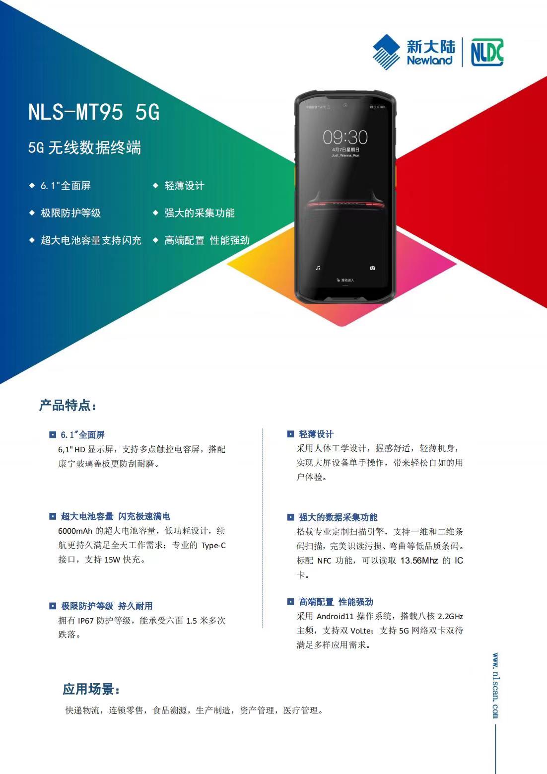 更新信息 快采购网供应商广州宏山自动识别技术有限公司供应新大陆MT95-5G手持终端PDA仓库盘点机数据采集器,为您提供详细的产品报价、参数、图片等商品信息,本产品于2025-09-28 17:07更新,主要更新内容为:产品类别、产品参数、产品价格、产品图片等信息。如需进一步了解新大陆MT95-5G手持终端PDA仓库盘点机数据采集器详细信息,请与厂家直接联系,并说明是在快采购网看到这条商机的。
