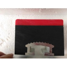 缓冲条由三部分组成,耐磨层——超高分子量聚乙烯,缓冲层——高弹性橡胶,连接结构——铝合金(井下也可用),其橡胶均为黑色,耐磨层超高分子量聚乙烯颜色可调,市场常用颜色为红色、黑色(阻燃缓冲条)居多