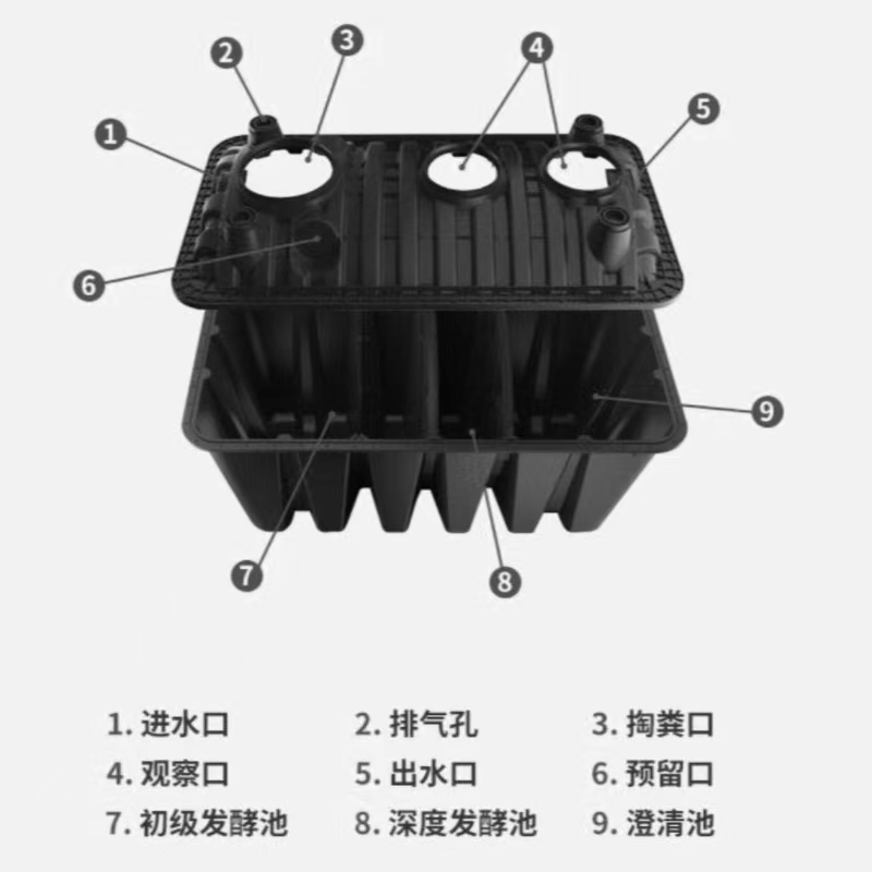 • 化粪池家用三格地埋式罐玻璃钢粪池密封井盖粪便溶解三