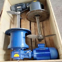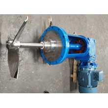 驱动装置(普通电机或防爆电机)通过圆柱齿轮、锥齿轮减速机等带动主轴,再通过联轴器与搅拌轴联接,带动搅拌器旋转。搅拌器通常采用轴流型,以推进式搅拌器为多,通过旋转推动液体流动,形成循环流,实现物料的混合和搅拌。