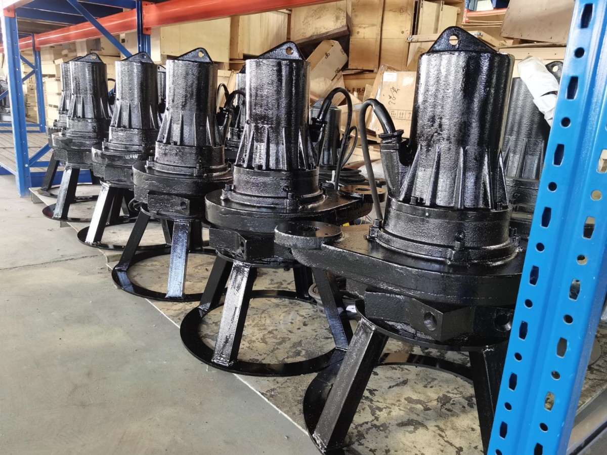QXB 型离心式潜水曝气机用于污水处理厂曝气池、曝气沉砂池, 对污水污泥的混合液进行充氧及混合,以及对污水进行生化处理或 养殖塘增氧。