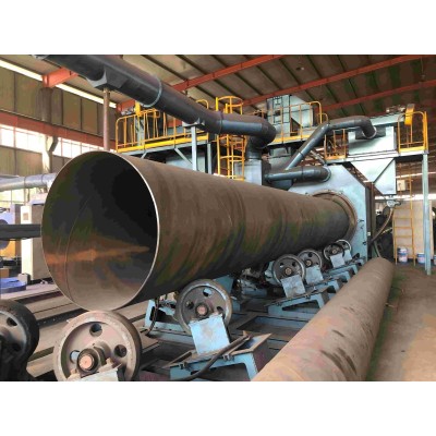 带钢处理:带钢头尾对接,采用单丝或双丝埋弧焊接,卷成钢管后自动埋弧焊补焊;成型前,带钢经过矫平、剪边、刨边,表面清理输送和予弯边处理。