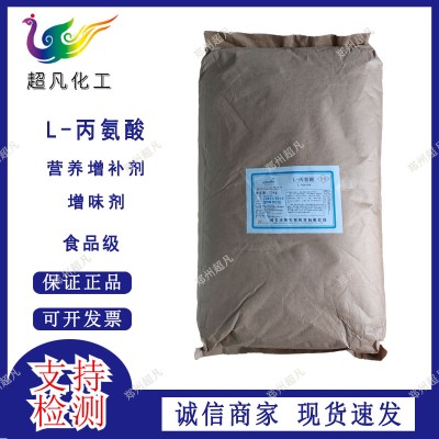 【产品包装】L-丙氨酸内用两层聚乙烯塑料袋,外用纸板圆桶包装或牛皮纸袋包装。净含量25kg。