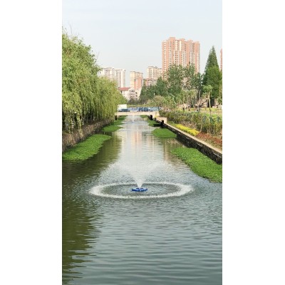 漂浮式喷泉曝气机:通过浮筒或浮标固定于水面,安装简便,无需基础施工,可随水位波动自动调整,适用于深水湖泊或池塘。