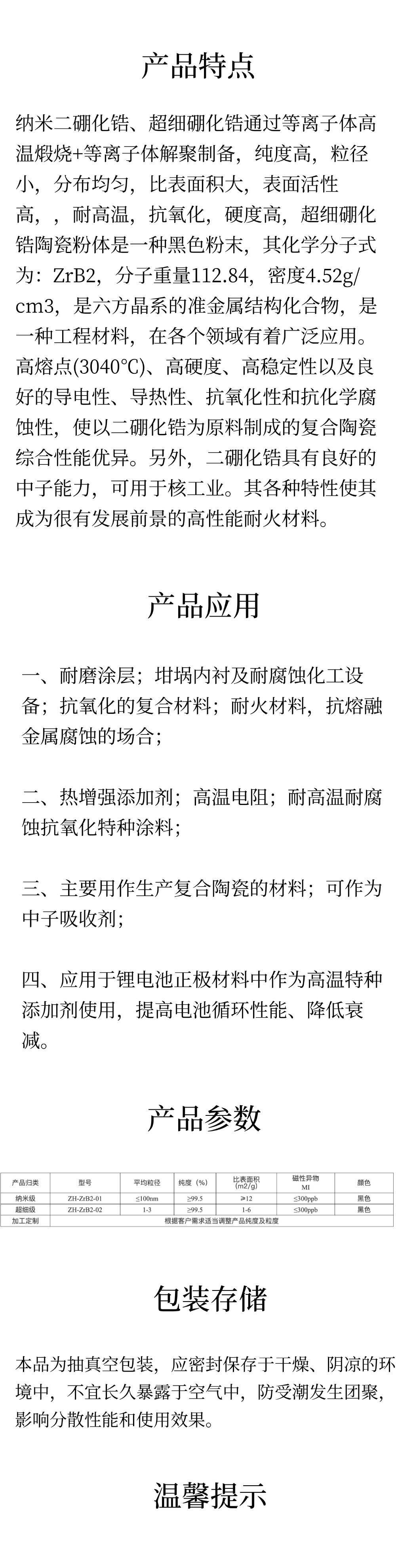 更新信息 快采购网供应商安徽中航纳米发展有限公司供应纳米超细硼化锆,为您提供详细的产品报价、参数、图片等商品信息,本产品于2025-10-29 13:28更新,主要更新内容为:产品类别、产品参数、产品价格、产品图片等信息。如需进一步了解纳米超细硼化锆详细信息,请与厂家直接联系,并说明是在快采购网看到这条商机的。