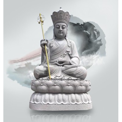 定做一尊石雕地藏菩萨 骑谛听石雕地藏王佛像 比丘相石头刻光头地藏像