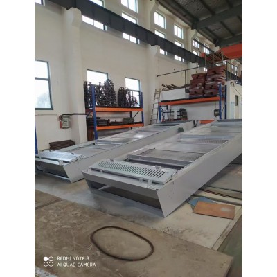 回转式粗格栅由独特的耙齿装配成一组回转格栅链,在电机减速器的驱动下,耙齿链进行逆水流方向回转运动。当耙齿链运转到设备的上部时,由于槽轮和弯轨的导向,每组耙齿之间产生相对自清运动,绝大部分固体物质靠重力落下,另一部分则依靠清扫器的反向运动把粘在耙齿上的杂物清扫干净。按水流方向,耙齿链类同于格栅,在耙齿链轴上装配的耙齿间隙可以根据使用条件进行选择,当耙齿把流体中的固态悬浮物分离后,可以保证水流畅通流过。整个工作过程可以是连续的,也可以是间歇的。