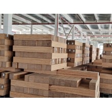 重组木在保留木材纤维排列方向的前提下,将木材碾压成“木束”后重组,通过热压工艺(如密度1.0g/cm³、温度170℃)提升密度和强度,甲醛释放量达E0级标准(≤0.5mg/L)或速生木经过旋切单板、干燥、浸渍胶、烘干,卷组坯冷压压制成方木、高温固化定型等工艺技术加工而成的新型结构用人造方木