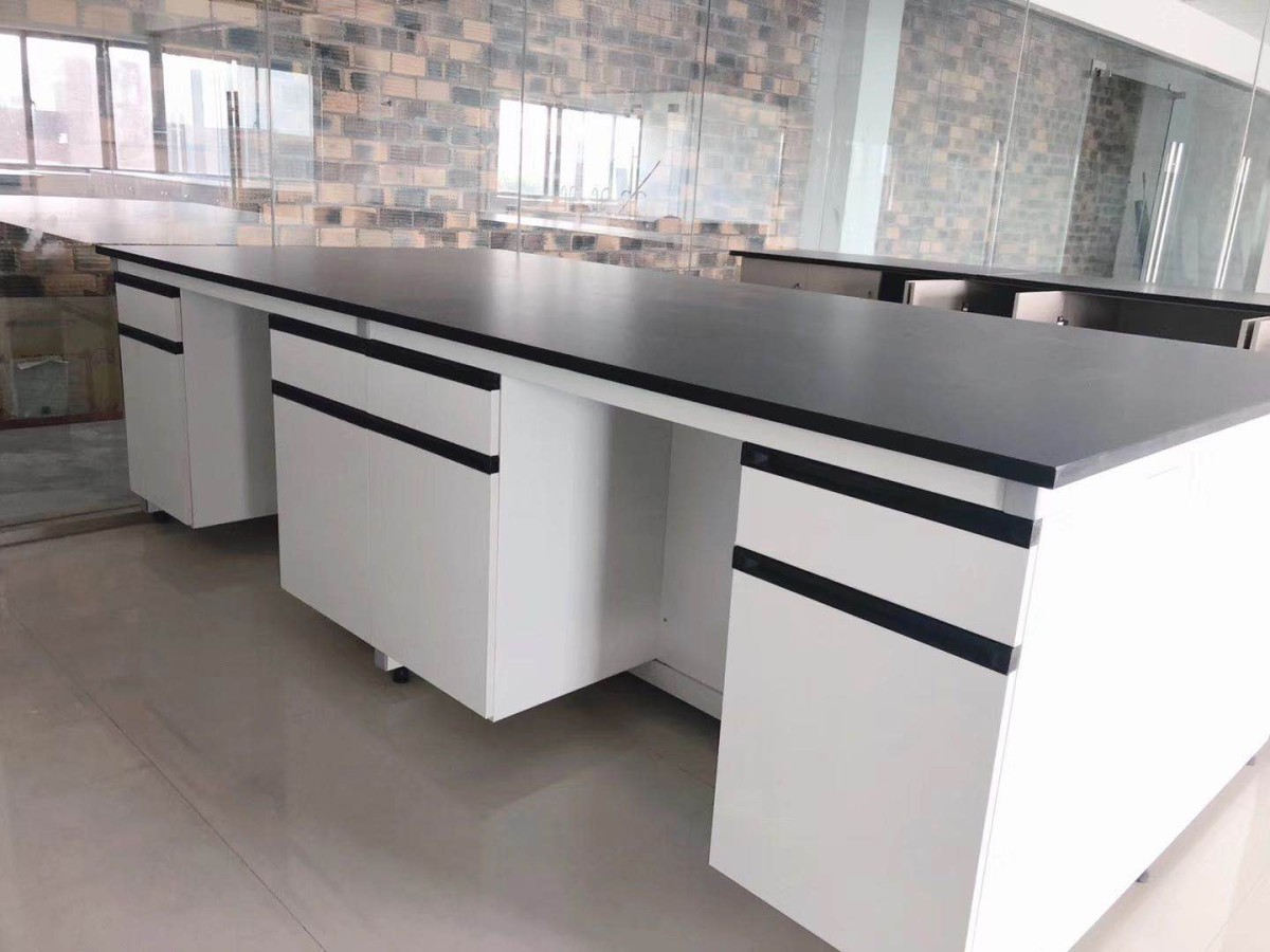 台面:采用(上海瑞欣)黑色12.7mm厚实芯理化板,耐酸碱、耐腐蚀,台面外沿倒角、加双层沿厚25.4mm。