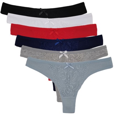 • 厂家跨境temu外贸女士内裤 螺纹棉蕾丝边纯色丁字裤内