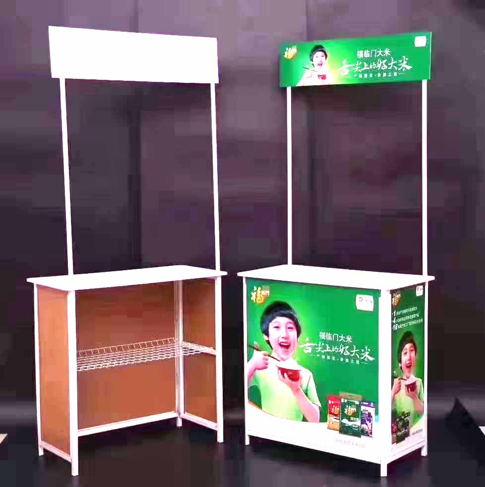 材 质 :铁管烤漆框 台面板和中间隔板为防火板,携带方便,安装简单。适用于各种展销会、大型卖场、商场、超市、房地产门市、产品促销等活动,结构牢固,成本低