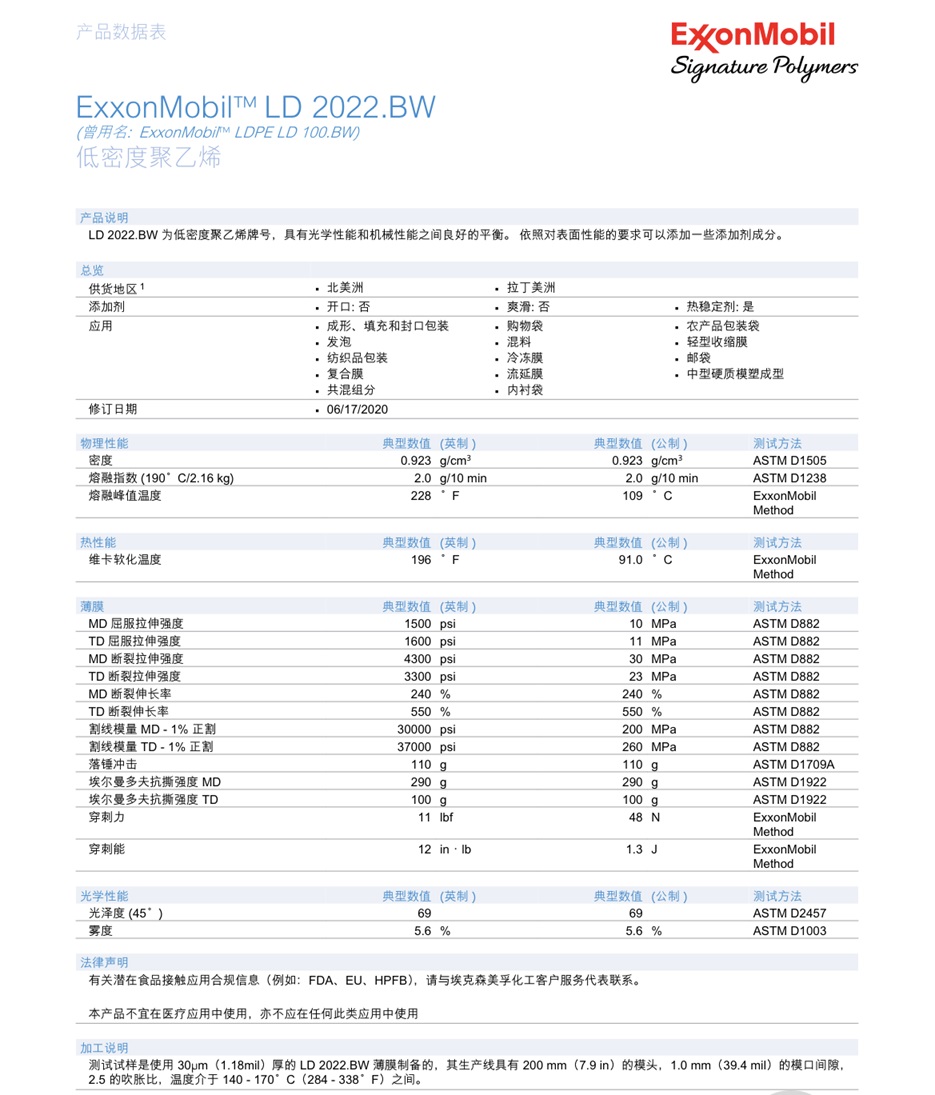 埃克森惠州化工LD2022BW(LD100BW),董经理I5OIO29O899随时咨询。