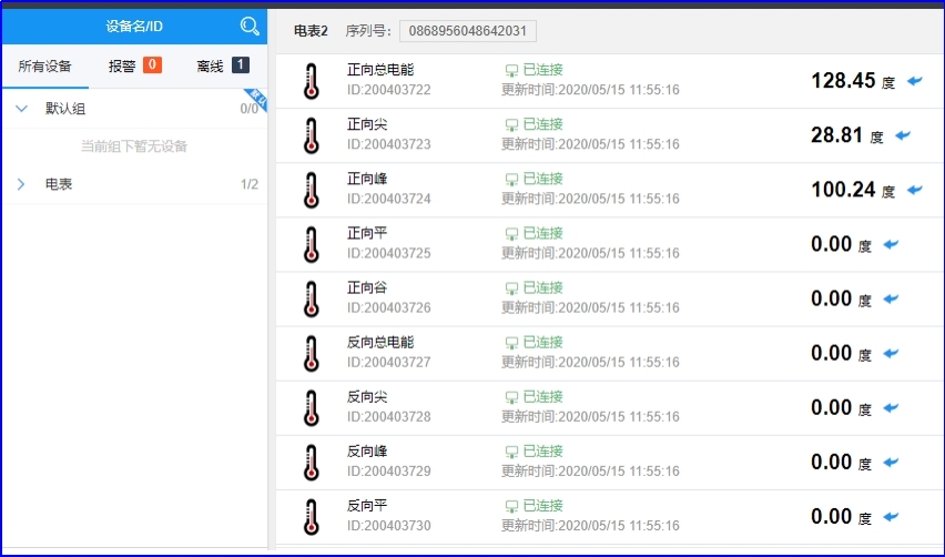 本案例中,采用电池供电方式采集工业园区10kV计量柜的电能表数据,采集频率为2小时每次,通过4G方式将电能表数据发送至远程服务器,实现园区能耗监测。