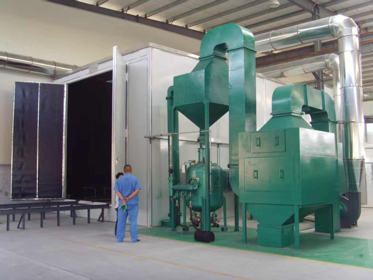 • 刮板系统:由刮板式自动回砂地板和刮板驱动机构组成,可将磨料从打砂房各角落收集并输送至*定位置。
