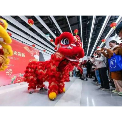 专业舞狮团队身披绚丽狮袍,跳跃腾挪间尽显灵动姿态,采青、吐幅环节寓意财源广进、事业兴旺