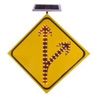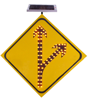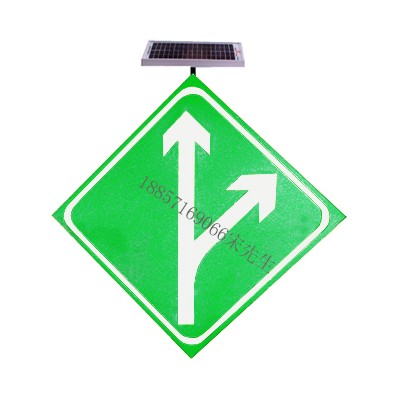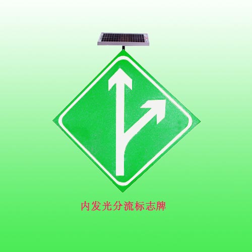 太阳能分流标志牌在无电源的高速公路互道前段,主动发光的交通标志显现出了强大的提示作用,其可视距离是以反光膜作为反光材料的标志牌的数倍,其动态效果也是普通标志牌所不可替代的警示效果。特别在现代的高速路、城市道路中,夜晚驾驶者很难迅速认清被淹没在霓虹灯光、广告灯箱中的传统交通标志,此时发光标志的主动发光性能显得尤为重要。