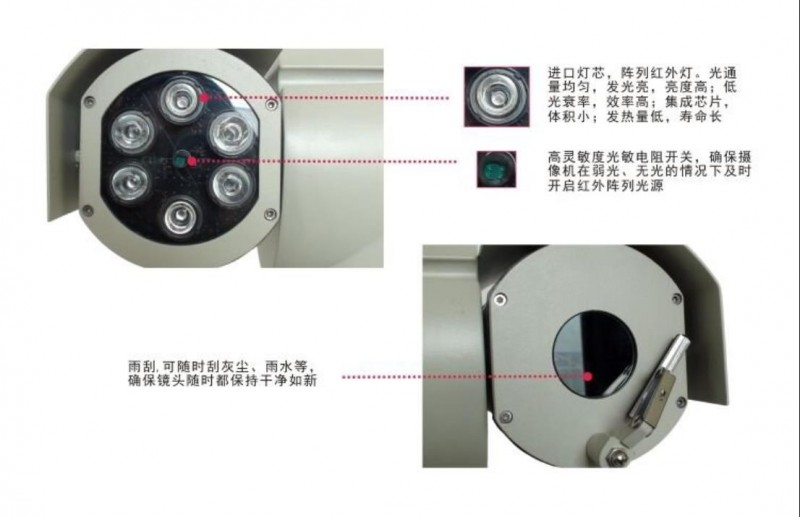 防护罩 | 材质 | 铝合金外壳,全封闭设计,一体化双视窗设计,带雨刷 | |